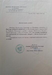 Jestem absolwentką Wydziału Fizjoterapii Akademii Wychowania Fizycznego we Wrocławiu.